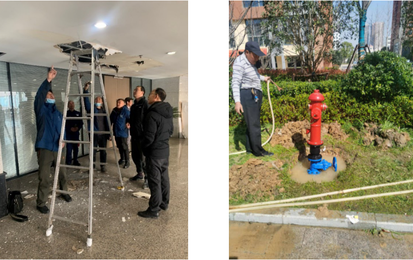 2月23日西区生命学院门厅消防水管发生漏水,我处迅速反应,及时联系现场负责人控制管道漏水;3月10日中区2号楼南侧室外消火栓发生漏水。漏水发生后,我处第一时间联系修缮中心,20min完成漏水的抢修。